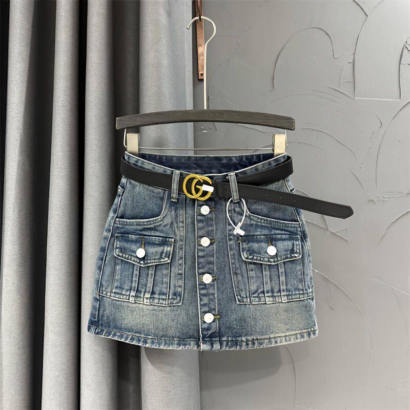 Jade Closet直营店推荐~美拉德纯欲风设计感双排扣牛仔半身短裙女
