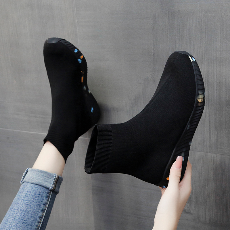 弹力袜子鞋女2024休闲女鞋2025新款冬季潮鞋百搭高帮运动短靴棉鞋