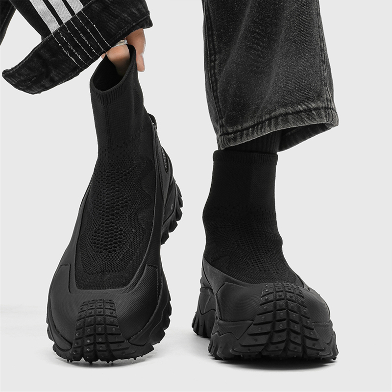 袜子鞋男鞋轻便软底弹力飞织网面透气袜鞋小众潮鞋运动黑色高帮鞋