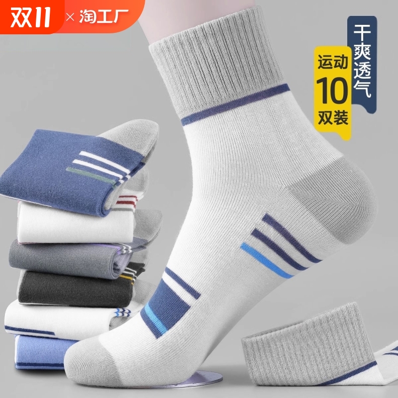 男士袜子纯棉休闲袜透气中筒袜弹力束腰篮球袜搭配运动鞋防臭条纹