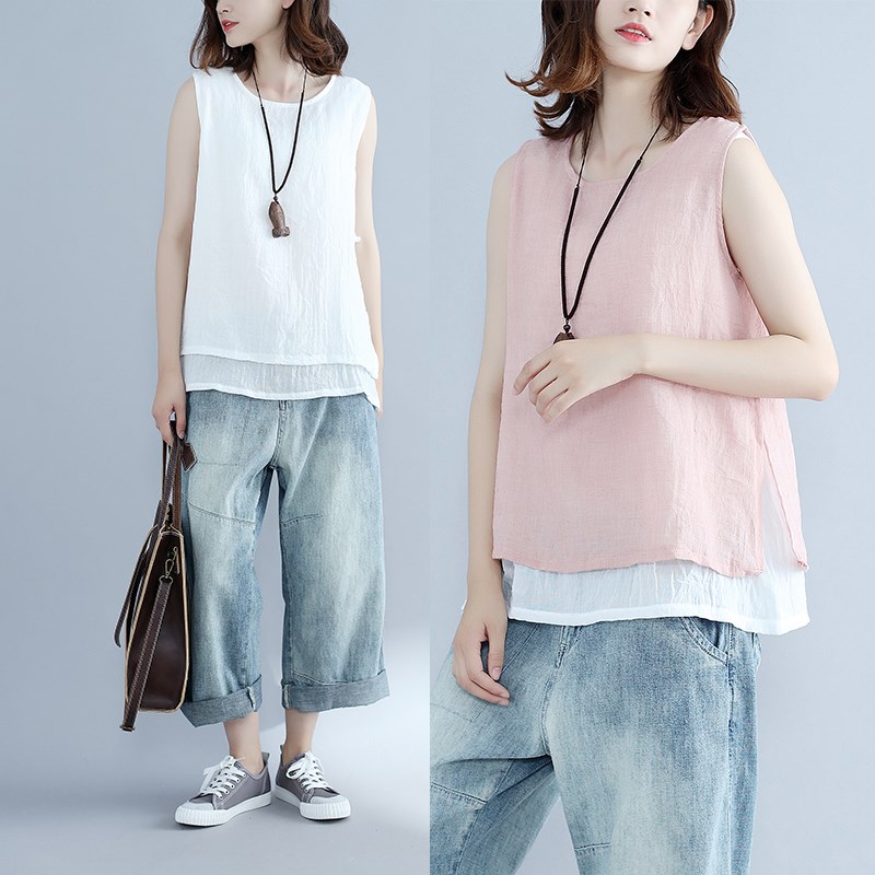 微胖女孩穿搭夏装2024新款胖妹妹大码上衣女显瘦减龄假两件小背心