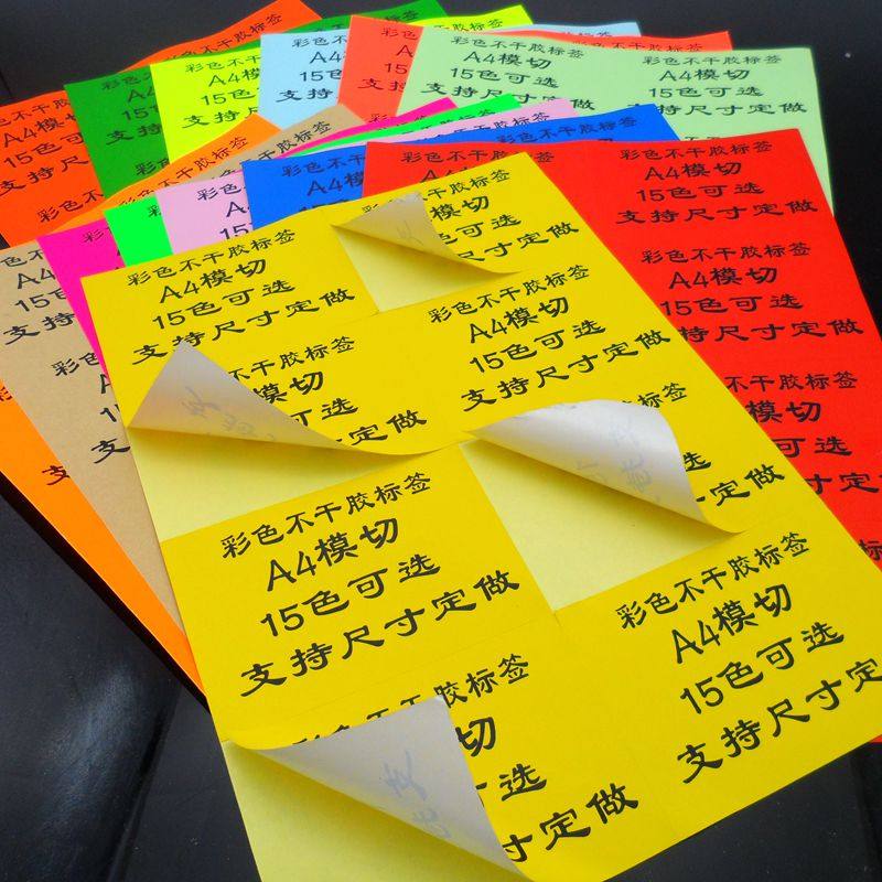 彩色不干胶贴纸a4 打印纸标签 整张 喷墨激光针式复印空白书写背胶黏贴红黄蓝粉可选自粘可定制做 牛皮纸标签