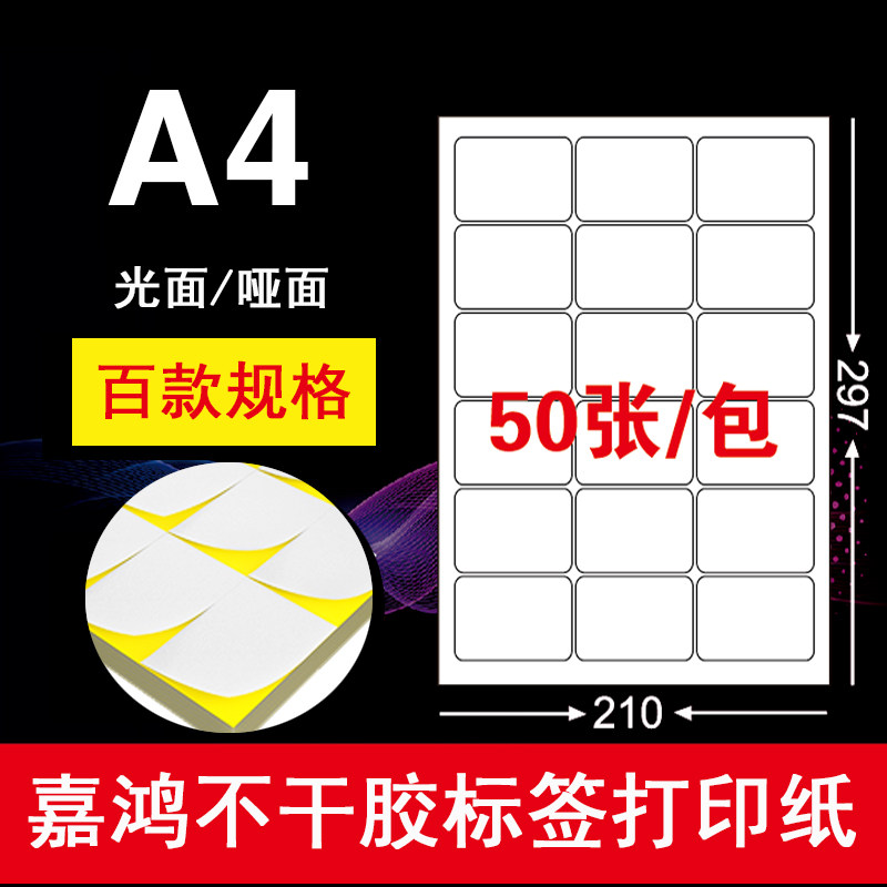 A4不干胶打印纸100张背胶纸哑光标签贴纸激光喷墨亚光牛皮纸a4内分切割铜版彩色光面哑银透明合成防水姓名贴