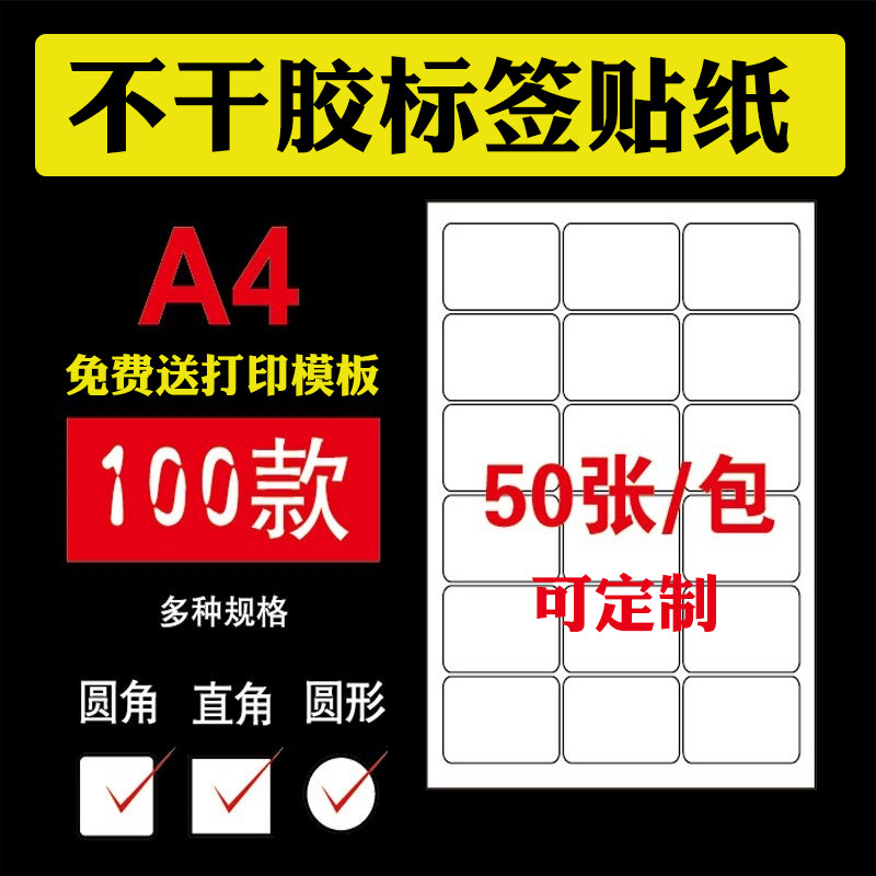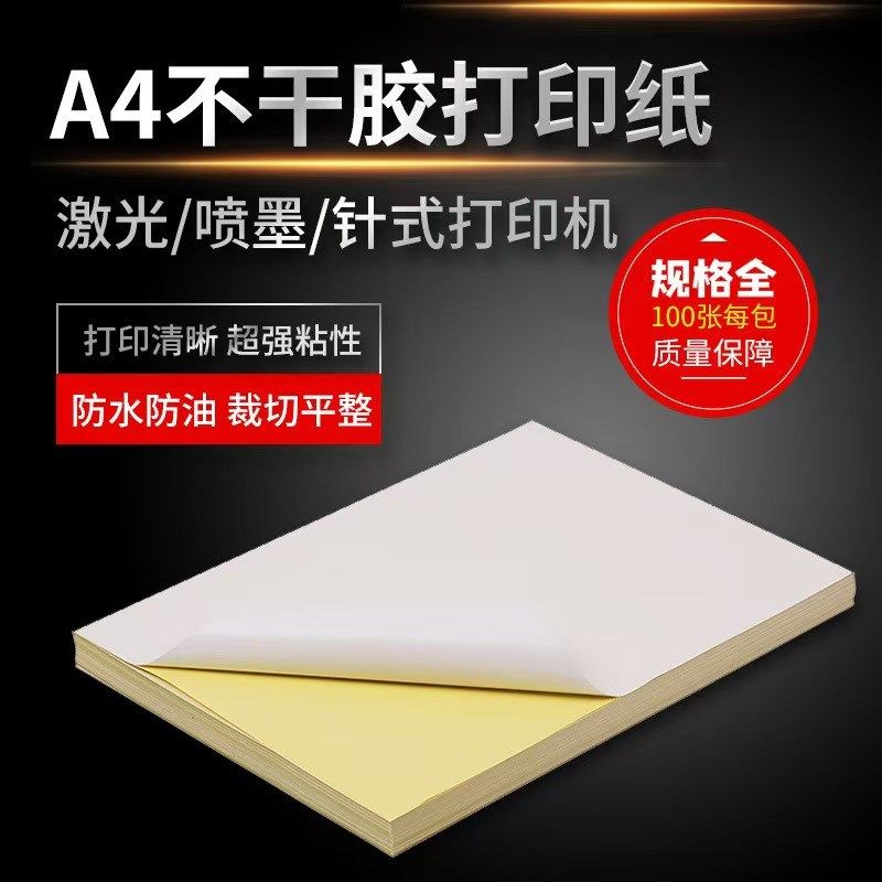 不干胶贴纸a4自粘白色空白带背胶纸光滑面哑面80g激光喷墨打印机纸a5a3不粘胶牛皮标签纸100张a4不干胶打印纸