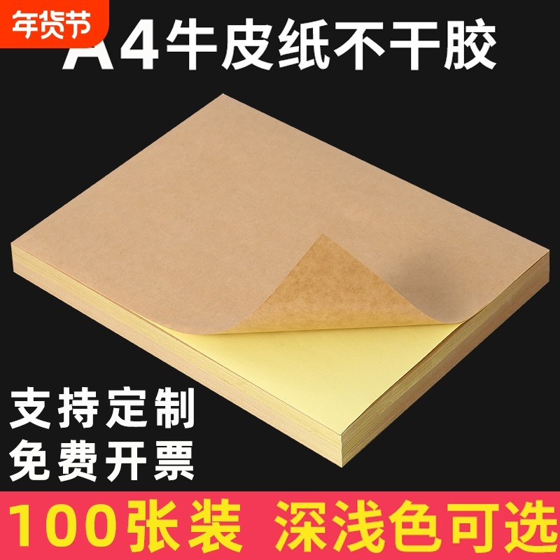 金沽长100张不干胶贴纸a4牛皮纸打印纸空白黄皮牛皮a4纸标签喷墨打印机唛头纸箱色背胶