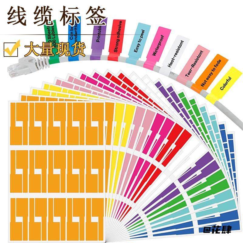 线缆彩色标签耐撕P形线缆标签彩色电线不干胶贴纸A4防水可打印