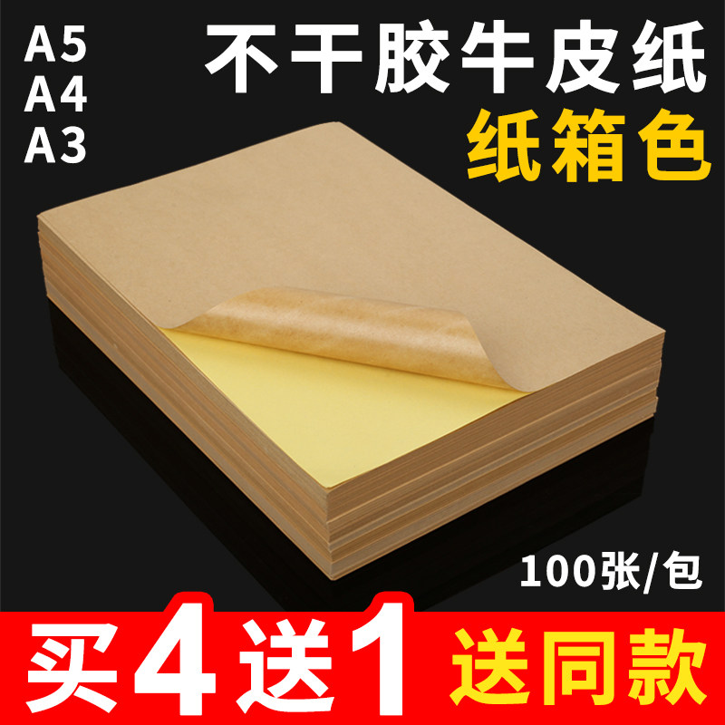 牛皮纸不干胶贴纸a4打印纸a5标签logo贴纸A3哑面书写深色纸箱色喷墨激光自粘背胶浅色黄底空白色不干胶标签