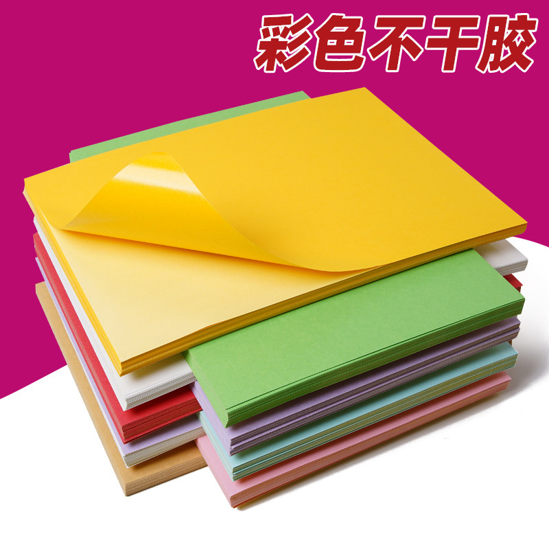 彩色不干胶贴纸A4打印纸标签背胶纸箱贴纸白色标签纸混色黄浅绿橙紫青蓝粉大红中国红荧光玫红牛皮色 100张
