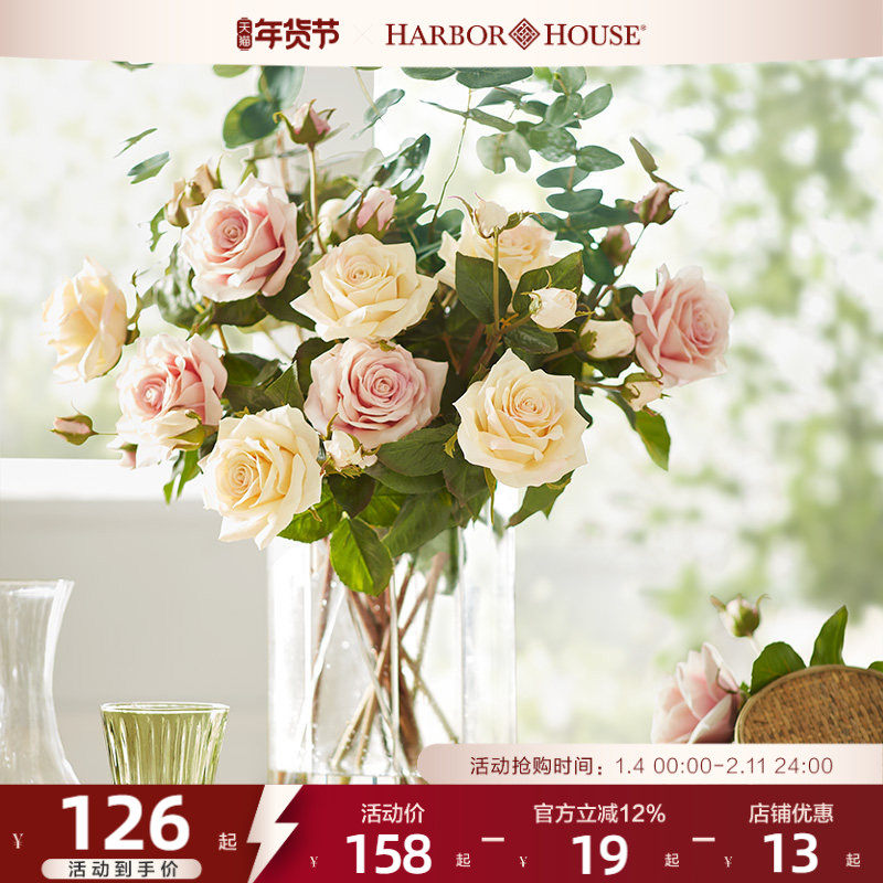 高级轻奢花束玫瑰花仿真花假花摆设客厅餐桌装饰干花插花花艺摆件