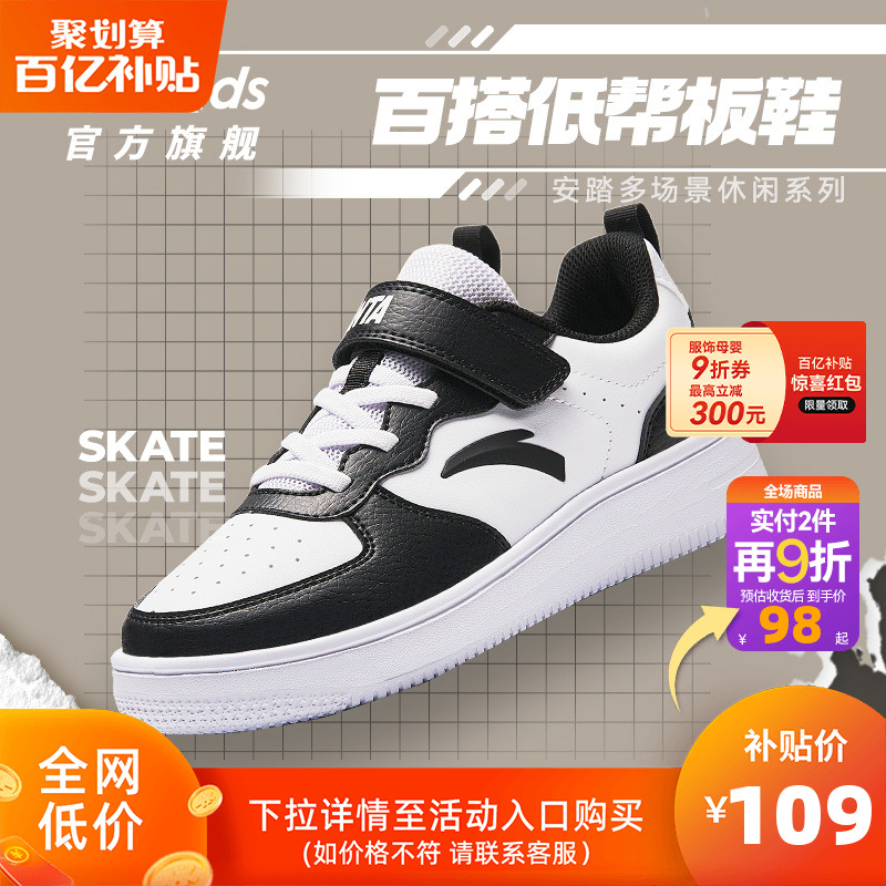 安踏儿童学生低帮板鞋男大童小白鞋女童春秋新款休闲鞋运动鞋童鞋