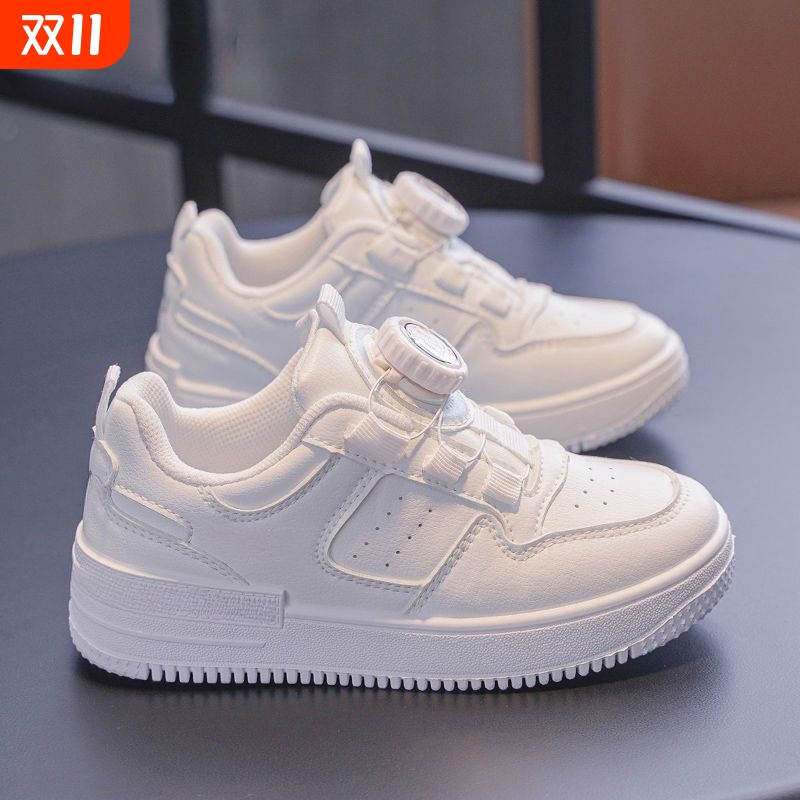 童鞋儿童小白鞋男童鞋子2024春秋季新款学生女童白色旋钮运动板鞋