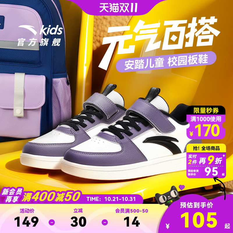 安踏童鞋儿童休闲鞋2025秋季新款女童低帮板鞋大童学生春秋运动鞋