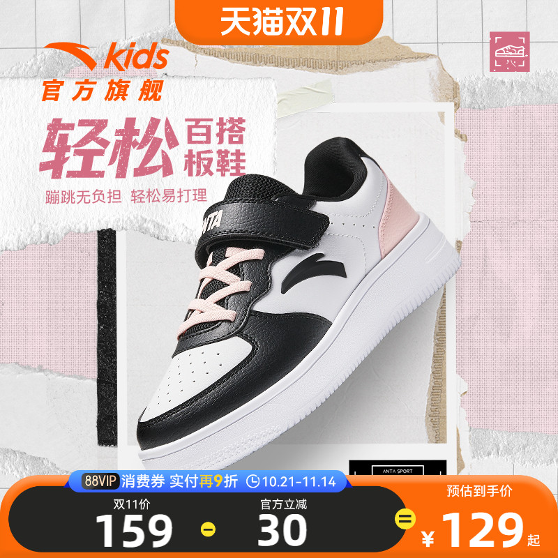安踏儿童学生低帮板鞋男大童小白鞋女童春秋女孩休闲鞋运动鞋童鞋