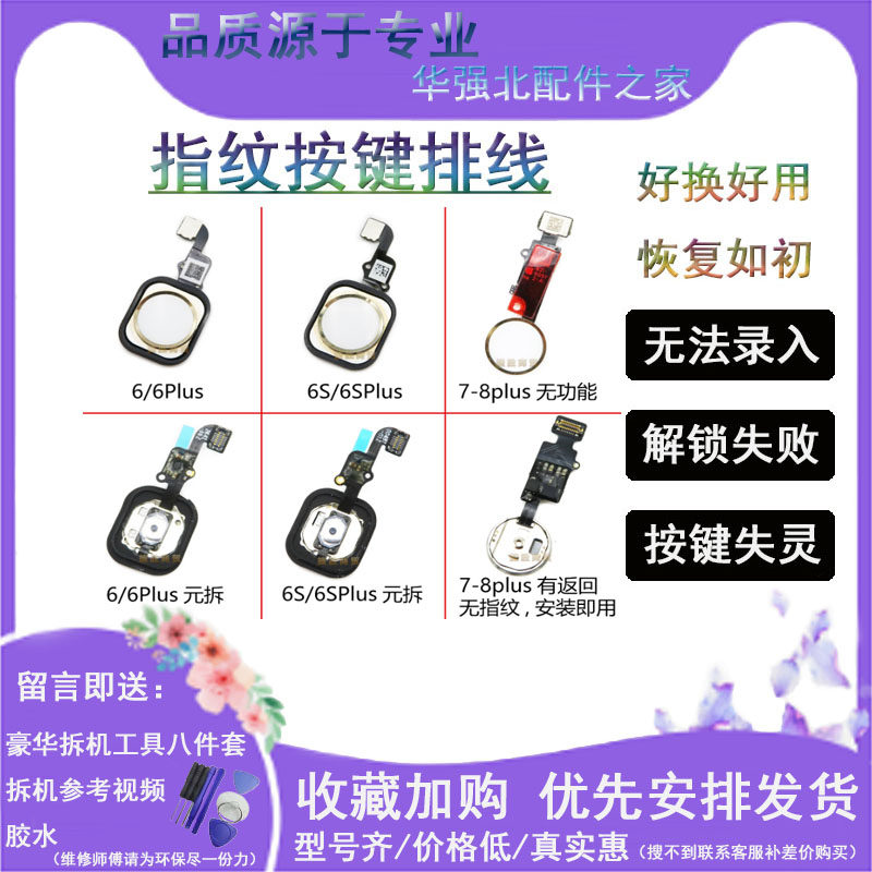 适用苹果iphone7plus万能返回键8代8p7home指纹按键排线总成6sp5s