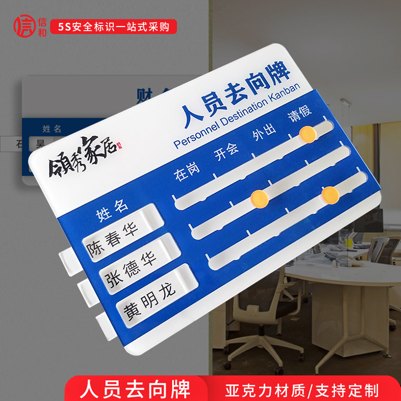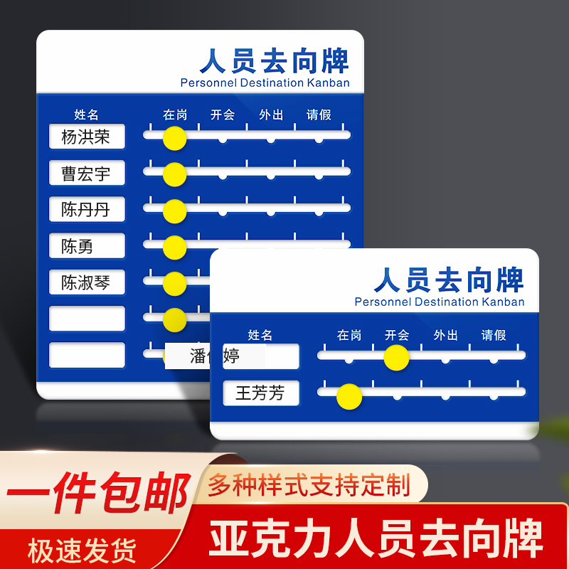 亚克力人员去向牌定制员工在岗离岗状态公示牌标识牌姓名公告去向板值班部门工作人员动向通知牌公示牌指示牌