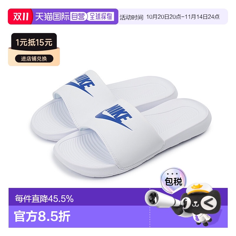 韩国直邮Nike Victori One 休闲户外 橡胶底一字拖鞋 男款 白蓝/C