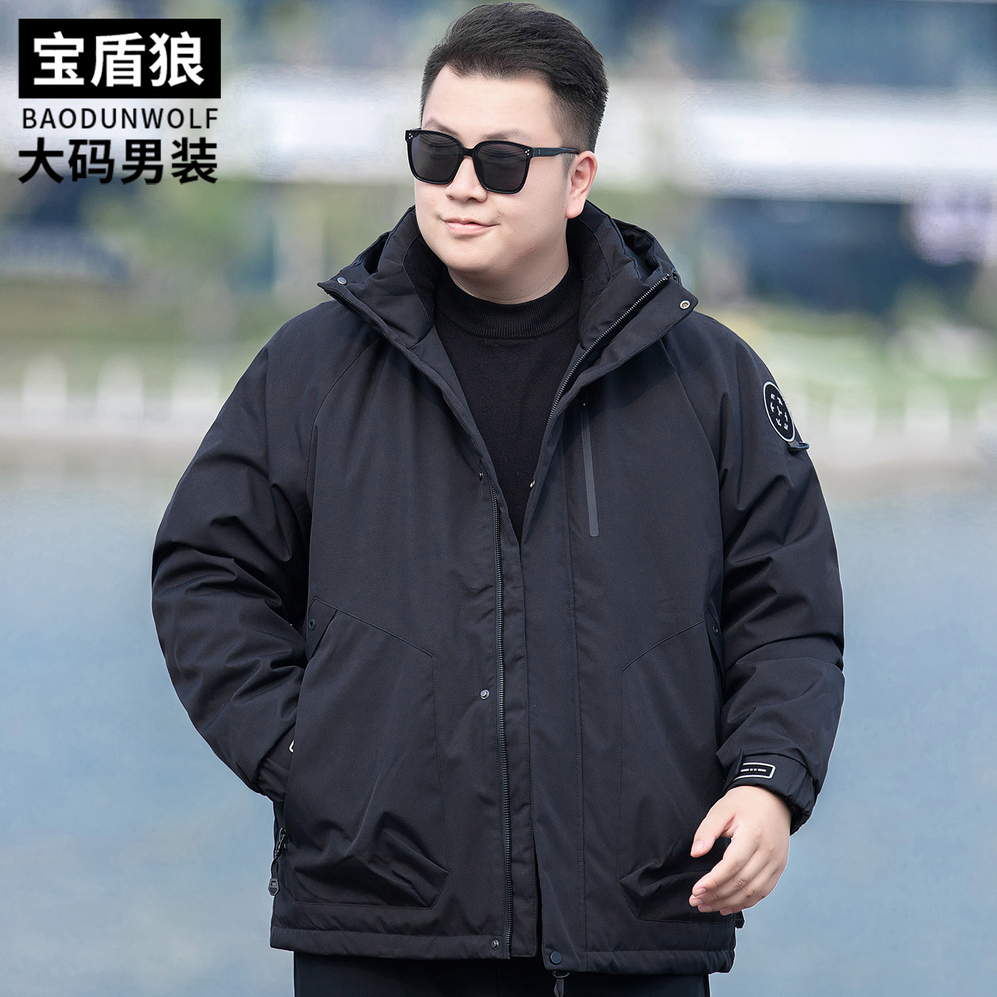 半墨大码男装连帽棉衣加肥加大2025冬季棉袄防风保暖肥佬棉服外套