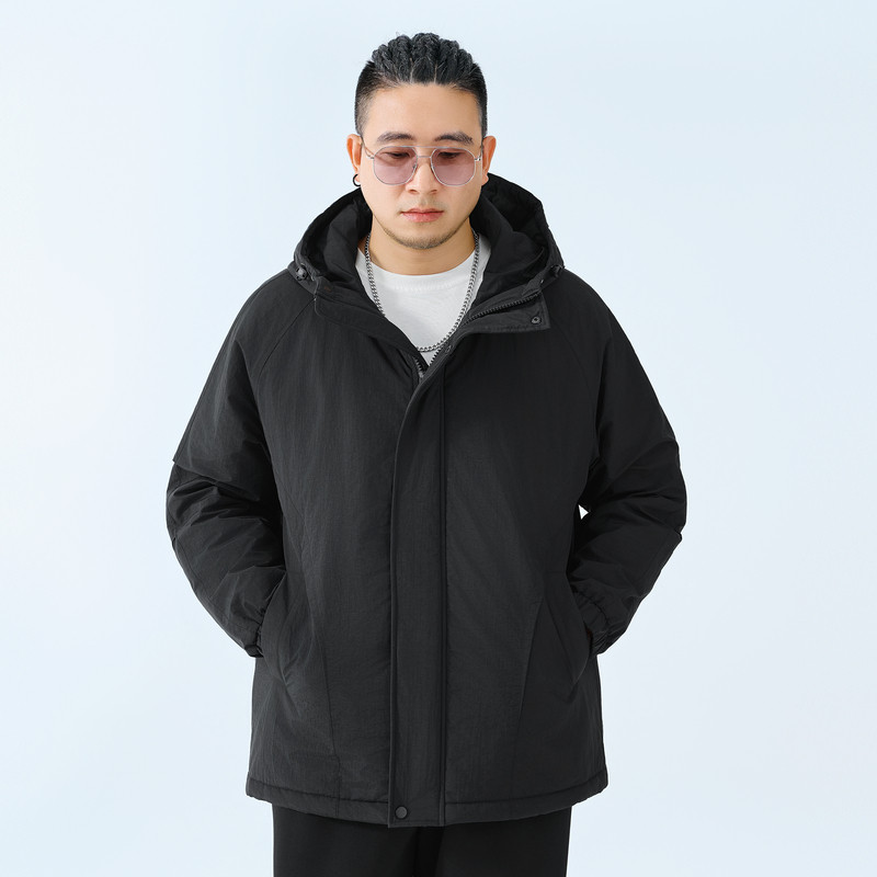肥佬宽松休闲夹棉茄克保暖上衣男冬季加大码可脱卸帽厚款夹克外套