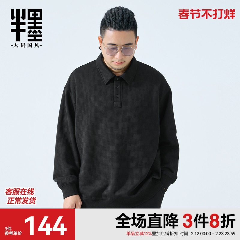 半墨大码男装秋季翻领卫衣男宽松加肥加大胖子肥佬肌理感外套潮流