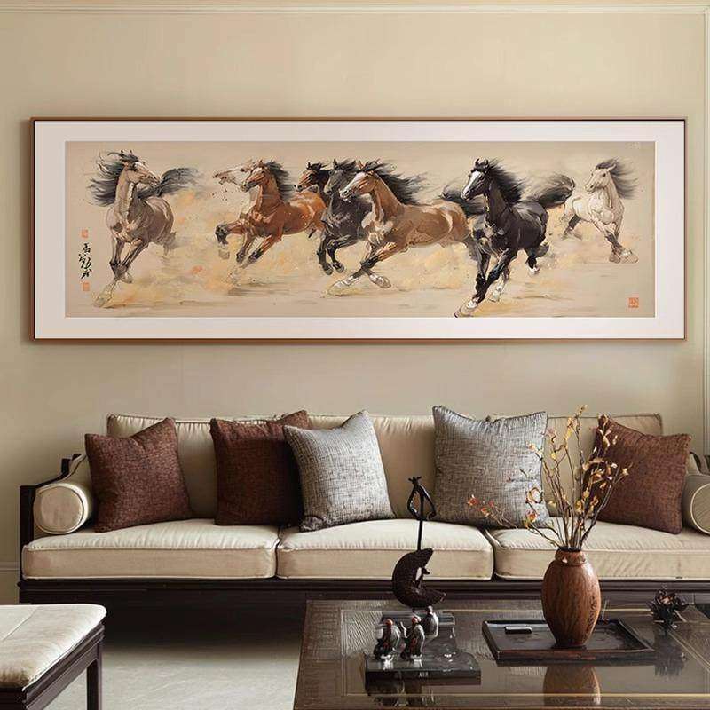 图骏马办公室背景墙沙发客厅新中式画挂画装饰画高档马到成功背景