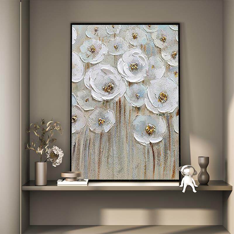 手绘油画璀璨繁花抽象艺术客厅卧室玄关大幅挂画轻奢民宿会所壁画
