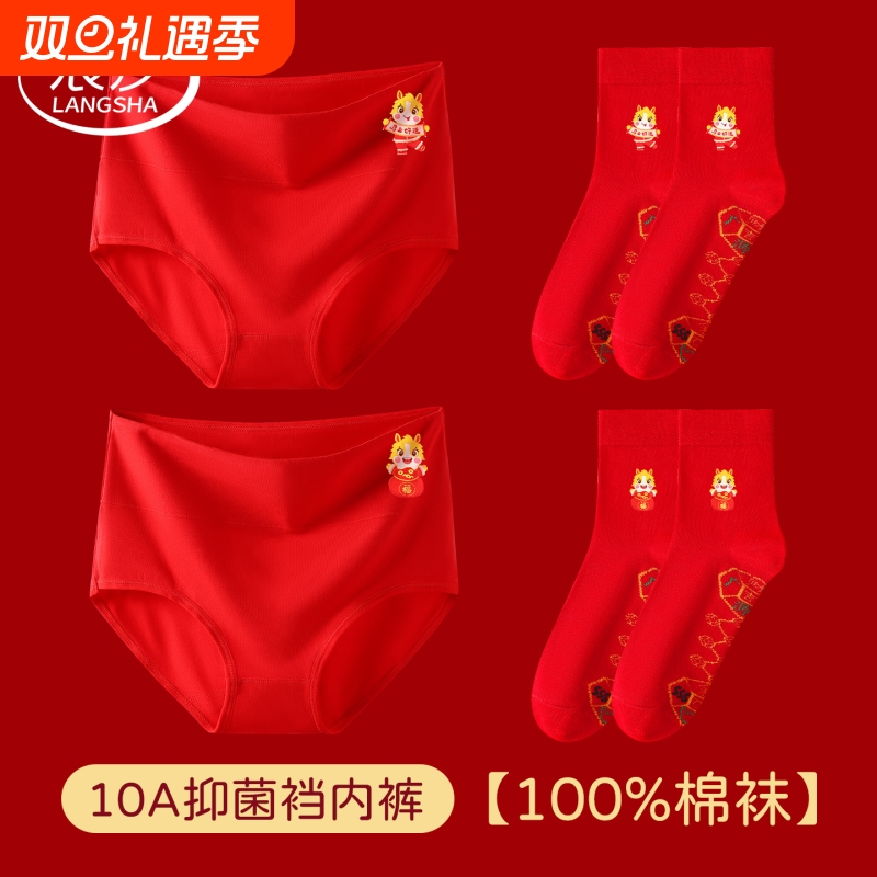浪莎内裤女士本命年属马年2025红色结婚纯棉大码大红袜子短裤秋冬