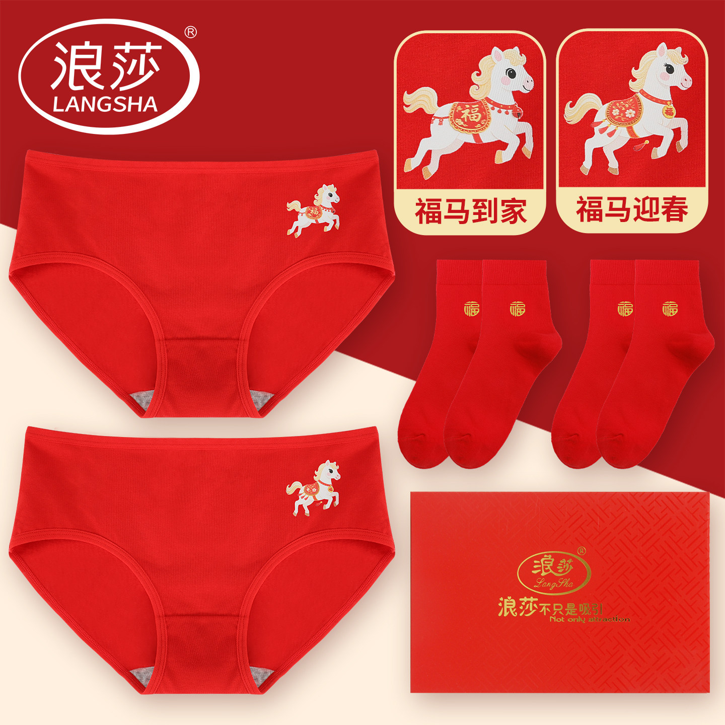 浪莎内裤女士本命年属马年2026红色结婚纯棉大码大红袜子短裤秋冬