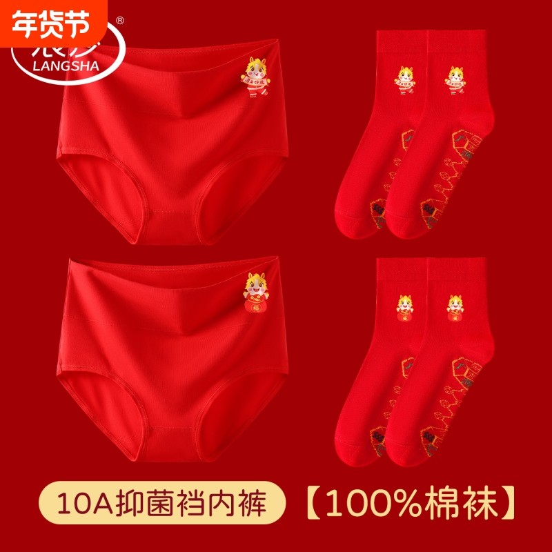 浪莎本命年红内裤女中腰纯棉属马年新年礼物红色袜子秋冬三角短裤