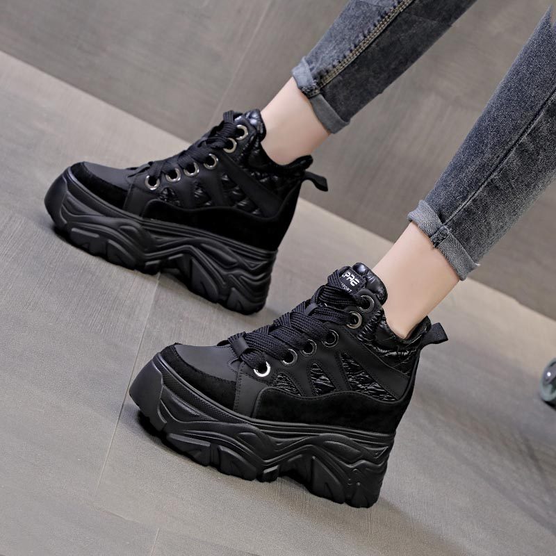 秋冬小白鞋内增高女鞋子12cm坡跟单鞋2025新款松糕鞋厚底高跟板鞋