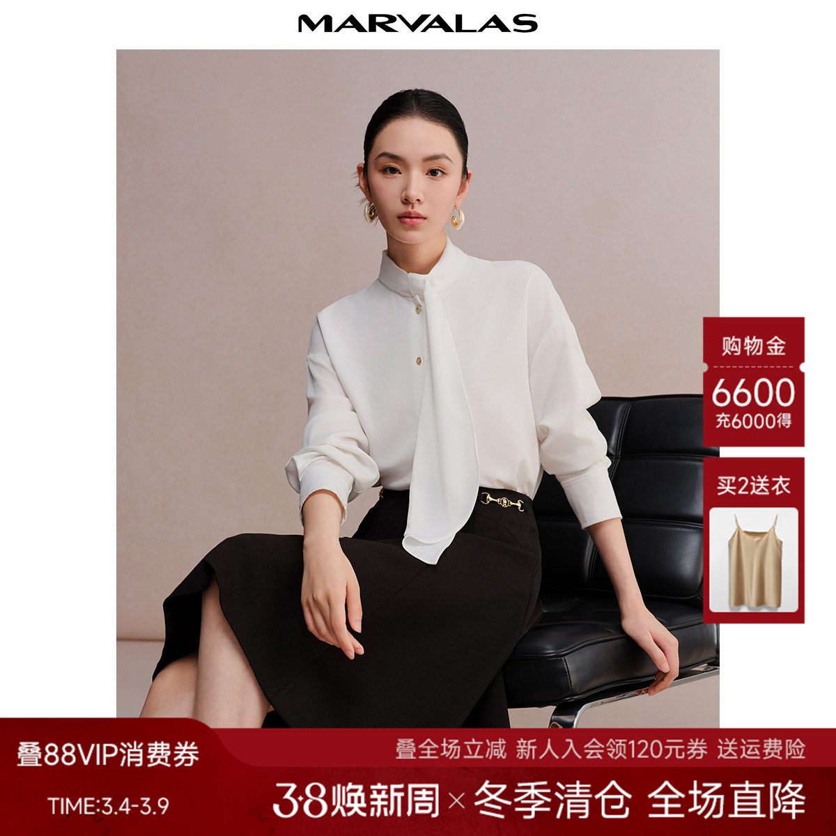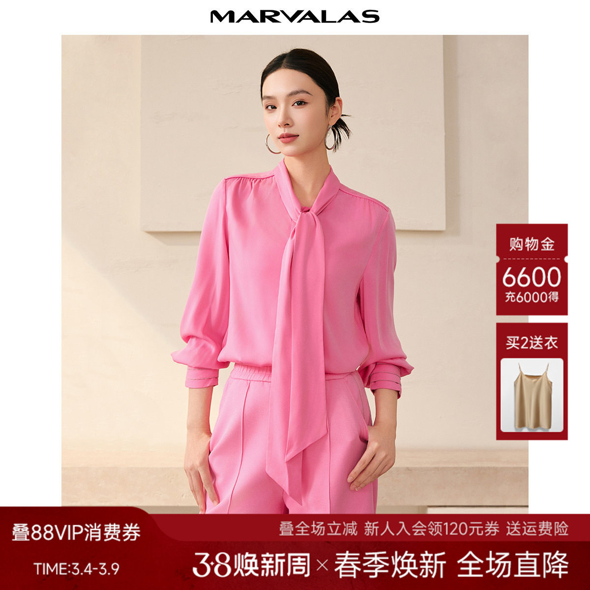 曼德诗纯色衬衫2026春季新款气质飘带领设计上衣时尚百搭雪纺衬衣