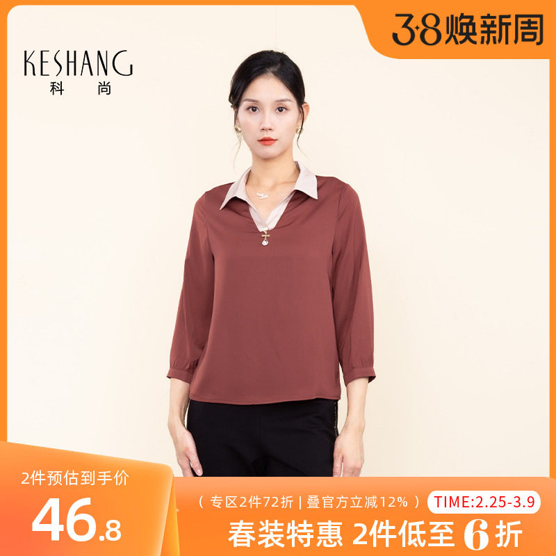 科尚雪纺衬衫女2026年春装新款时尚翻领衬衣长袖设计感纯色上衣女