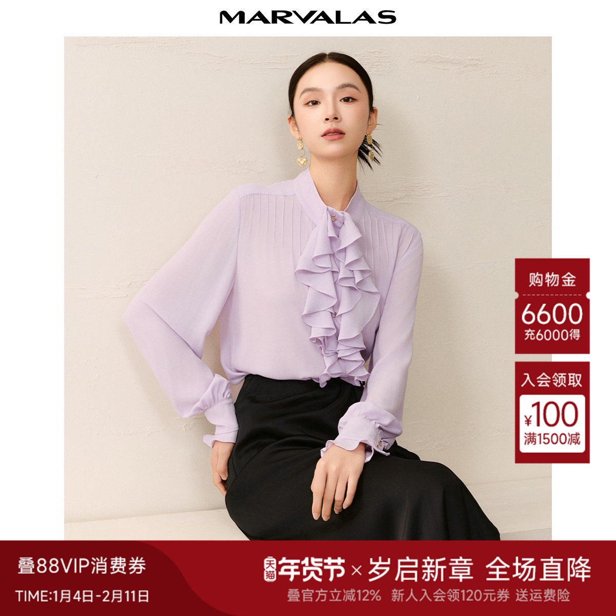 - 荷叶边衬衣女长袖