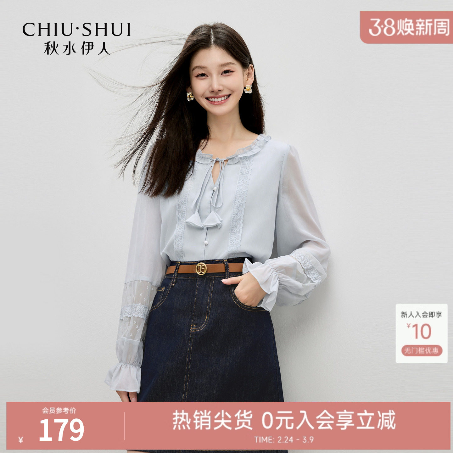 秋水伊人法式纯色雪纺衫2026年春季新款浪漫通勤衬衫圆领系带上衣