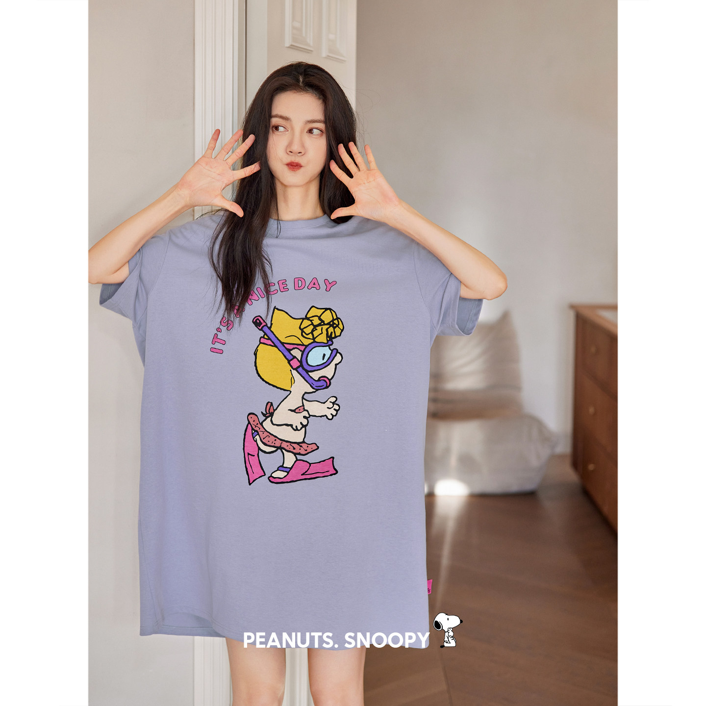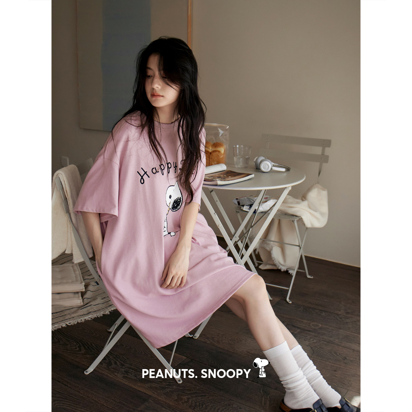 贝妍凉感莫代尔棉睡衣女夏薄款短袖睡裙可爱史努比慵懒宽松连衣裙