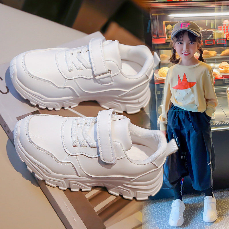 儿童小白鞋女童白色运动鞋老爹鞋童鞋小学生网面透气校园男童白鞋