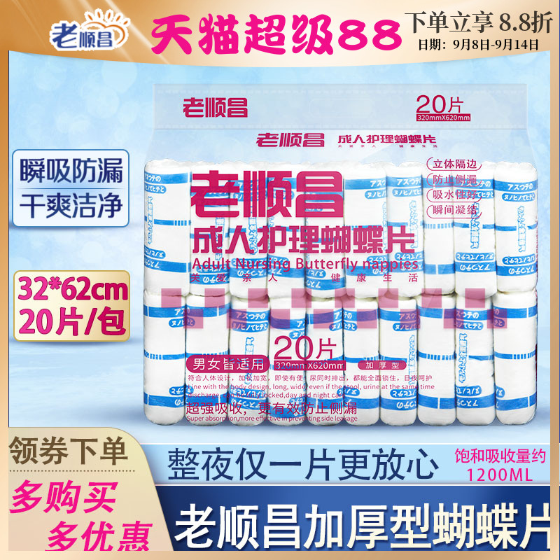 老顺昌蝴蝶片成人纸尿片L老人尿不湿护理垫男女尿布湿纸尿裤尿垫