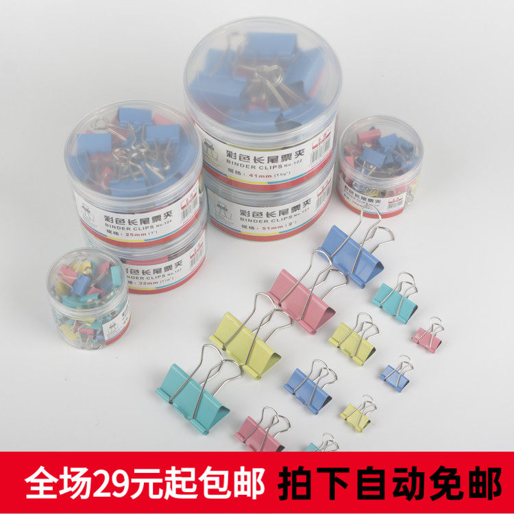 彩色长尾夹单色桶装51mm41mm32mm25mm19mm15mm多规格可选色燕尾夹