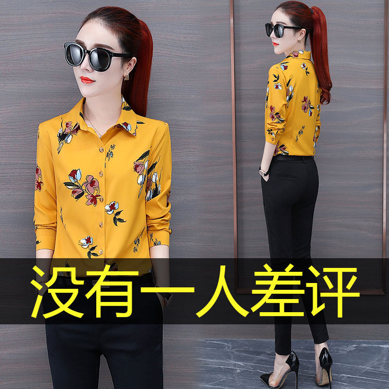 碎花雪纺衬衫女新款初秋装长袖上衣时尚洋气衬衣气质打底小衫定制