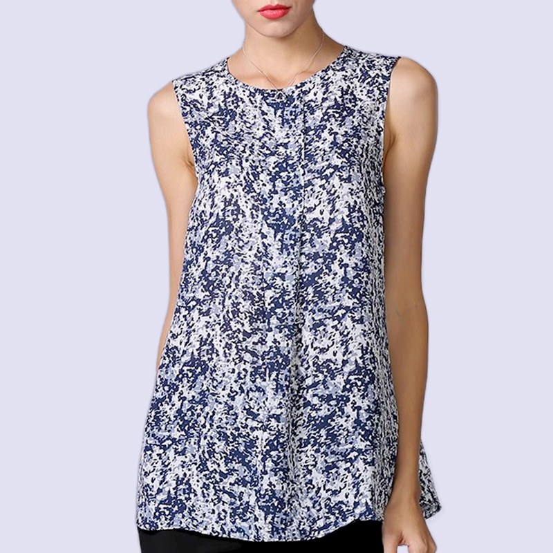 夏季大码女装2025新款雪纺衫碎花无袖上衣打底小衫背心印花衬衫