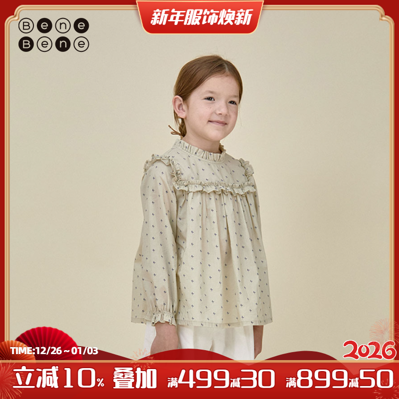 benebene童装春夏新款女宝宝碎花雪纺衫女童新年长袖打底衬衣衬衫