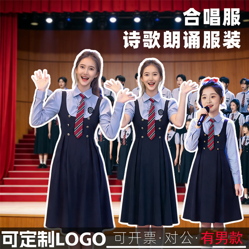 大合唱团诗歌朗诵演讲演出服长裙高初中学生成人运动会学院风班服
