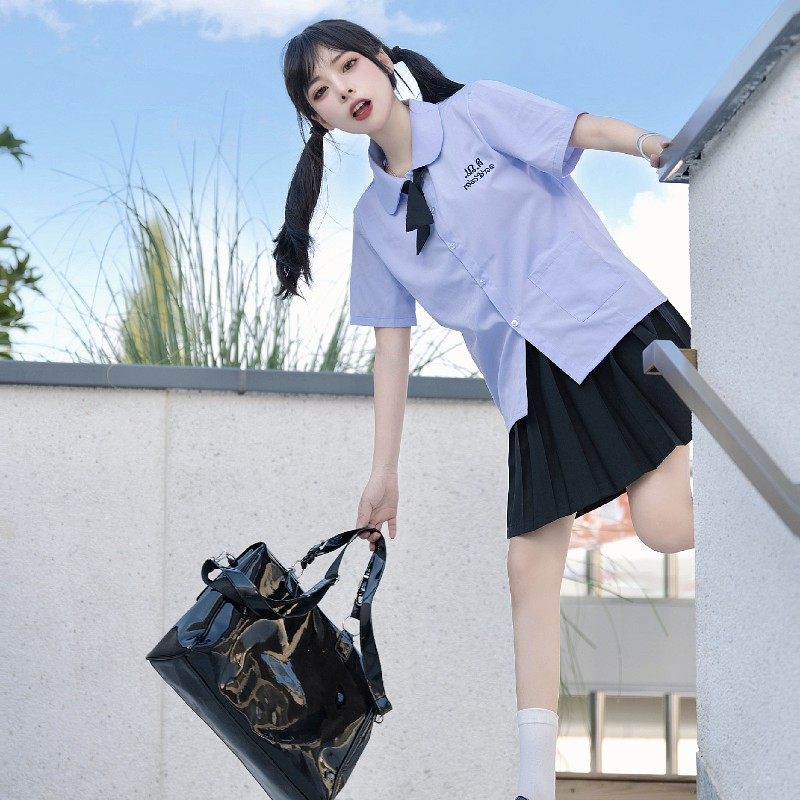 短袖衬衫女夏季娃娃领上衣宽松日系学院风班服泰国校服jk制服套装