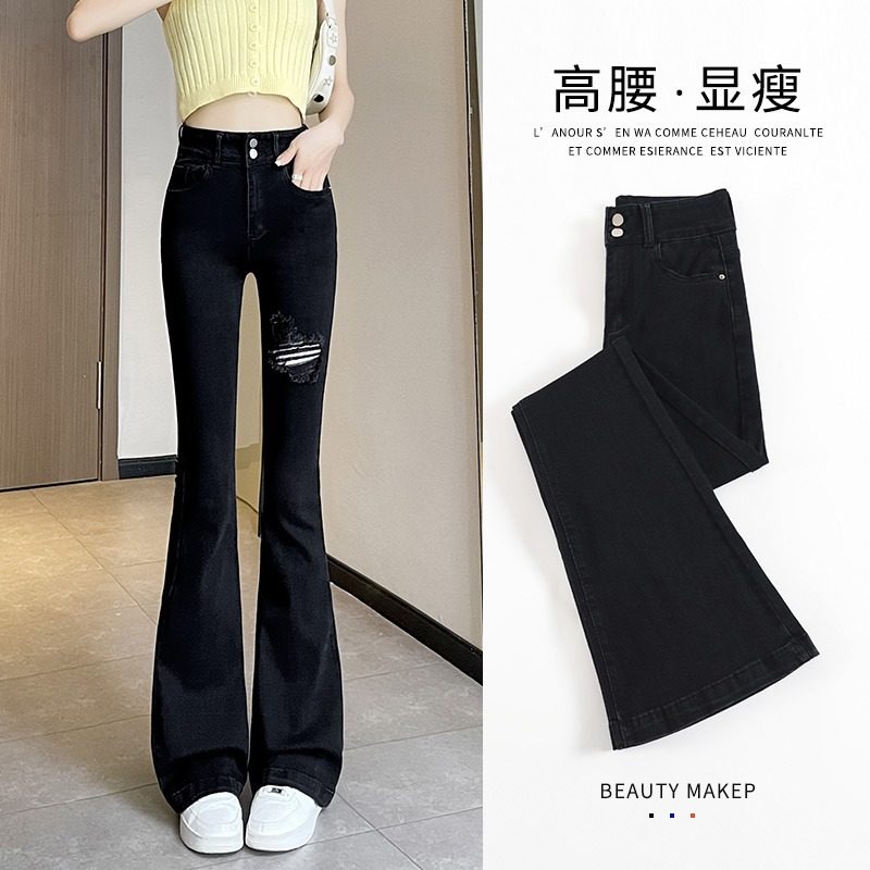 - 黑色牛仔裤女 显瘦黑 高腰 百搭