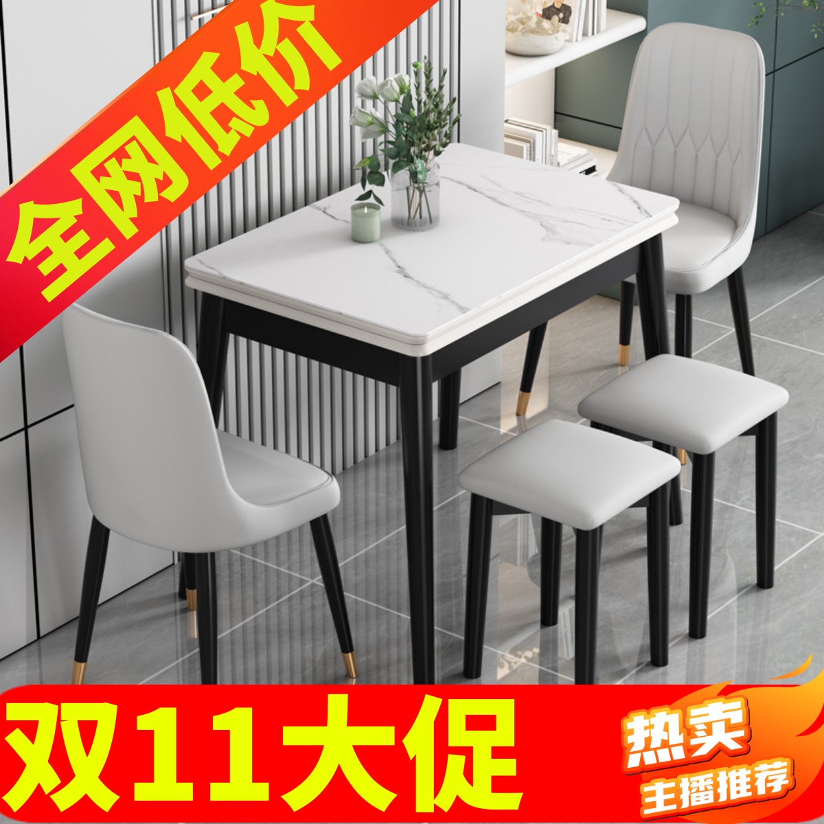 小户型可折叠式岩板餐桌椅组合可伸缩轻奢实木家用吃饭桌子省空间