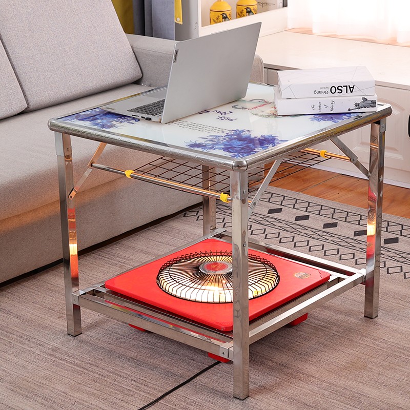 不锈钢烤火桌家用取暖桌可折叠小饭桌简易四方桌收纳桌正方形餐桌