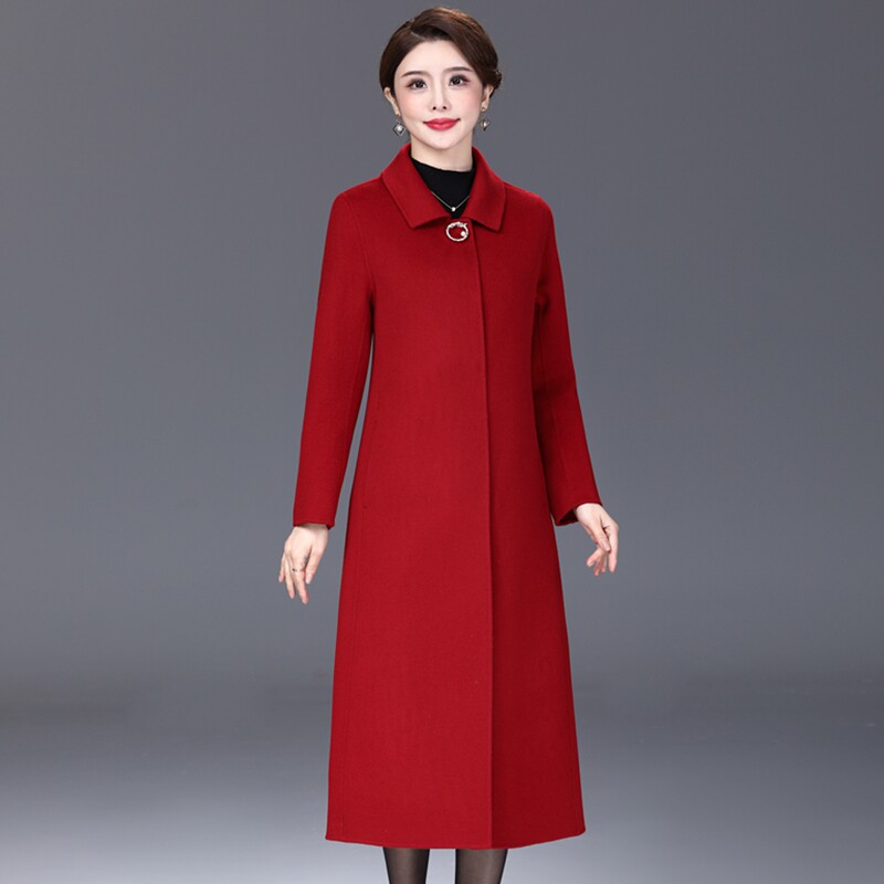 - 中老年毛呢大衣女长款
