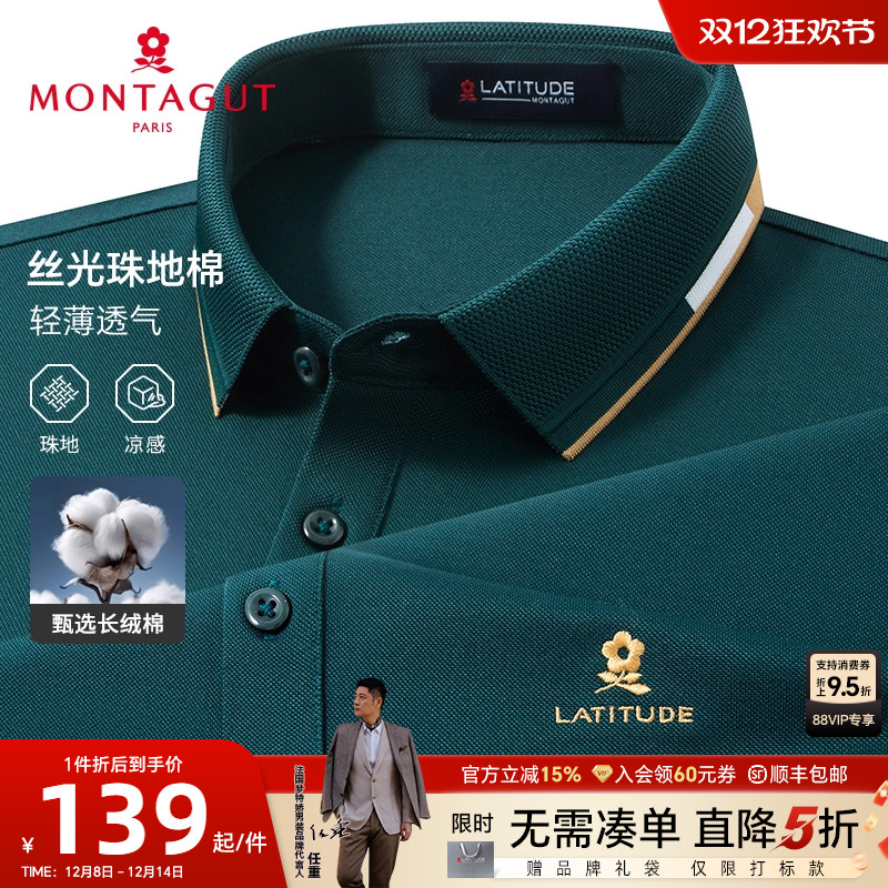 [桑蚕丝/天丝凉感]梦特娇夏季短袖Polo衫男士商务翻领丝光棉T恤J