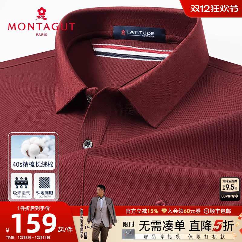 [桑蚕丝/凉感丝光棉]梦特娇25夏季男士polo衫短袖翻领纯色棉T恤J