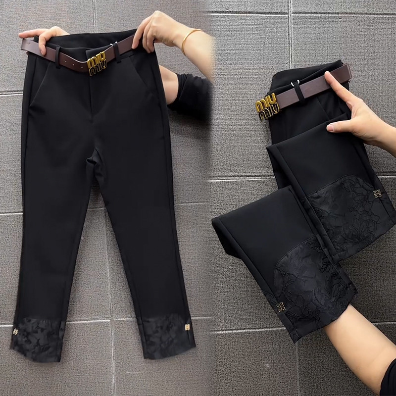 提花拼接小西裤女九分裤2025春秋新款弹力休闲裤小脚裤显瘦西装裤