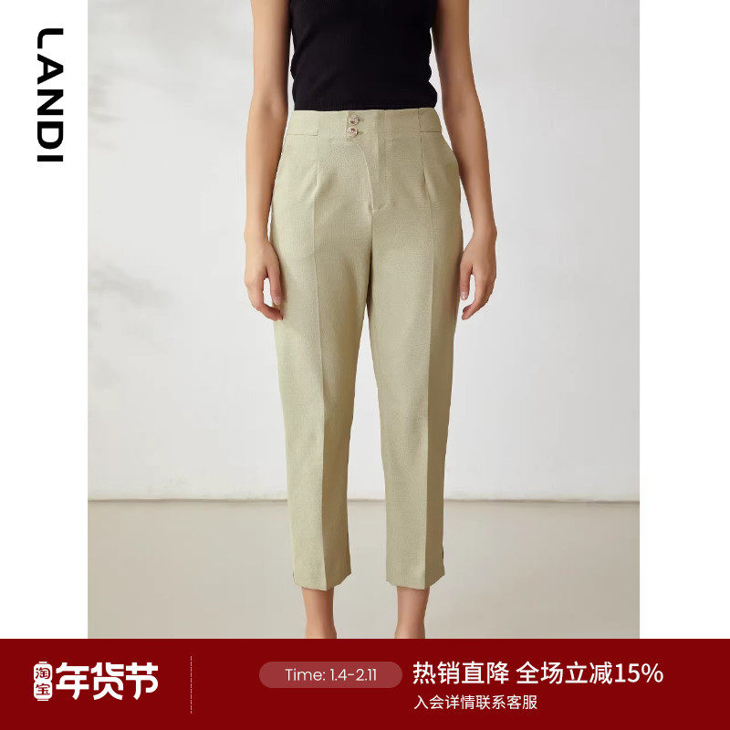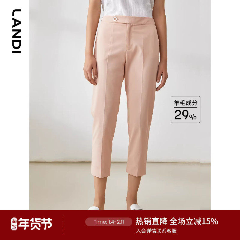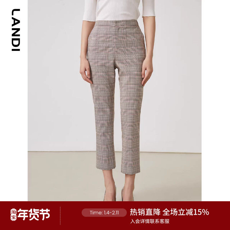 LANDI格纹小脚西装裤女2023年春季新款修身显瘦小个子长裤